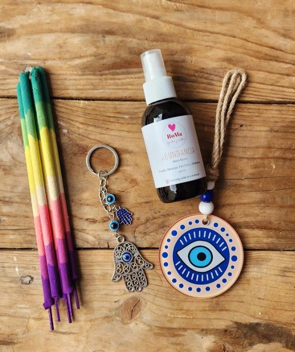 Incluye un rocío áurico Abundancia con canela, naranja, pachuli y albahaca para que pueda usar en ambientes, telas, antes de una reunión importante o cuando inicie un proyecto