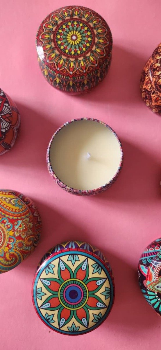 Velas de soja aromáticas, en lata con los colores mas vibrantes